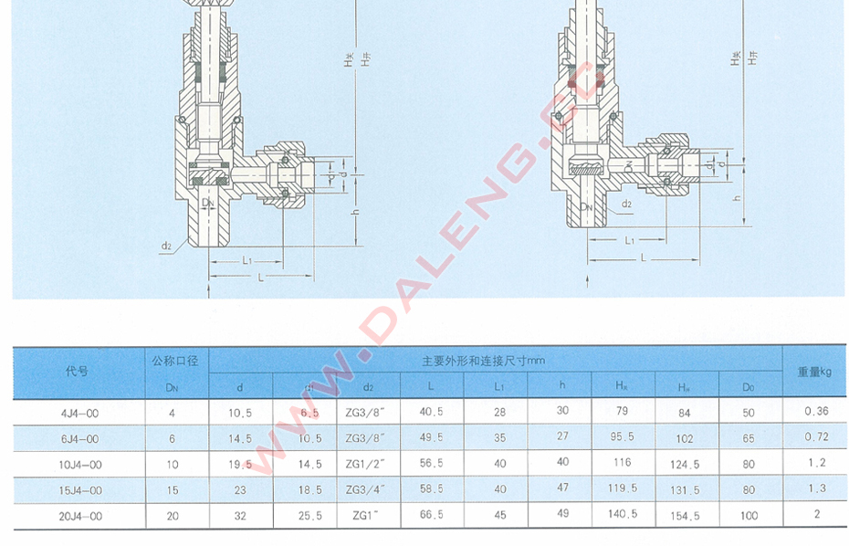 DN4-DN20直角截止阀的阀体及阀盖均为锻钢件。