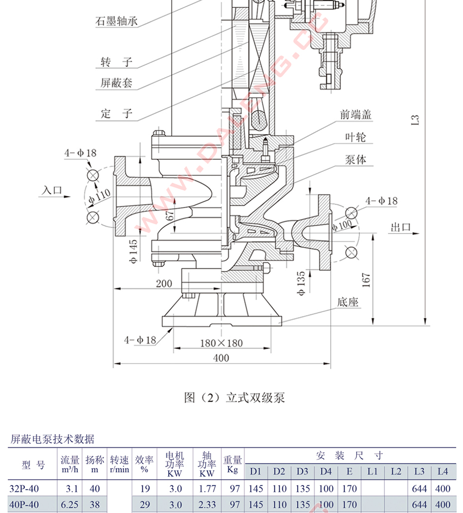 屏蔽电泵是由屏蔽电机和离心泵同轴组合在一起。是一套无泄露的密封装置,不需用机械密封填料,使输送的介质无泄露。